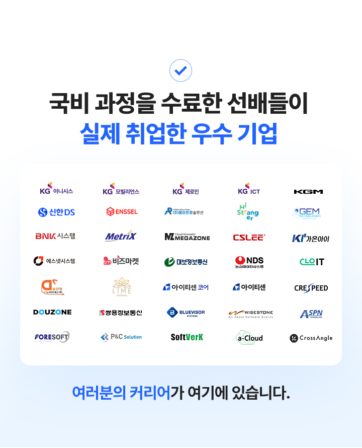 프론트엔드 개발자, 백엔드 개발자, 풀스택 웹개발자, 빅데이터 솔루션 개발자, 데이터 기반 웹서비스, 공공기관 빅데이터 전문가, SI프로젝트 개발자, ERP/CRM 솔루션, 크로스 플랫폼 개발자, QA/웹운영/기획자