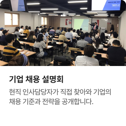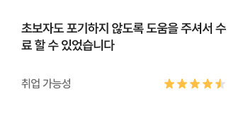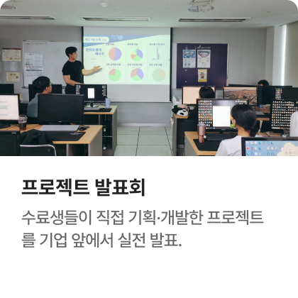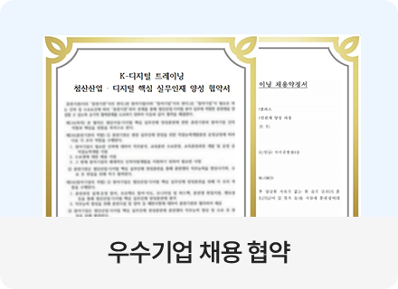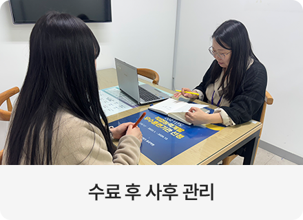 과정중에는 취업지원상담, 취업특강이 진행되며, 과정 수료 후에는 6개월간 사후취업관리를 받으실 수 있습니다.